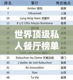 世界顶级私人餐厅榜单揭晓!独家排名,不容错过